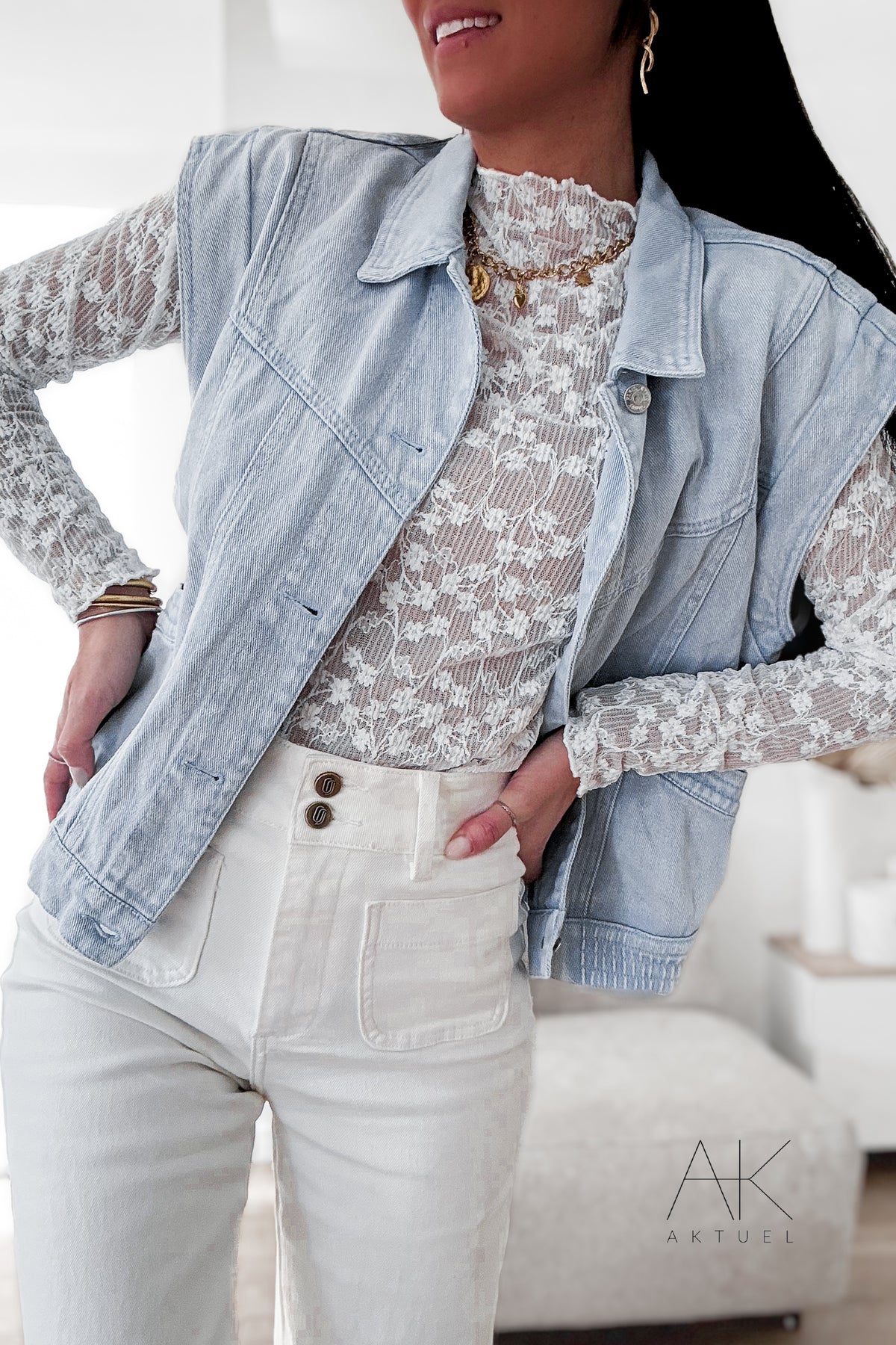 Veste sans manches en jean bleu délavé