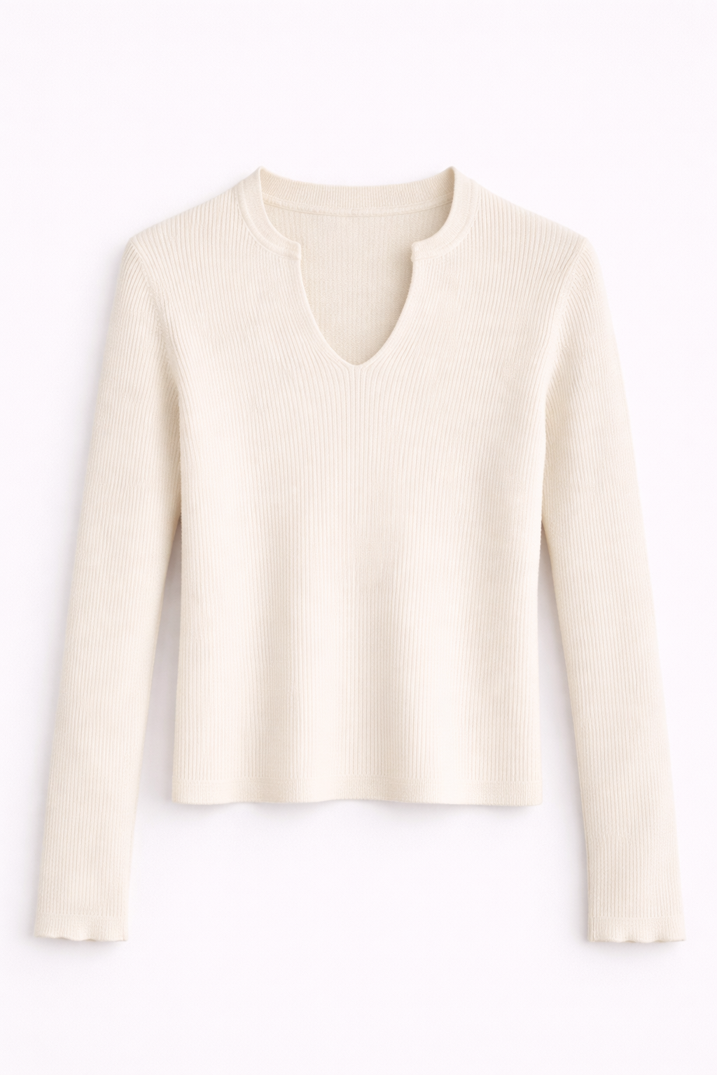 Pull blanc côtelé petit col V