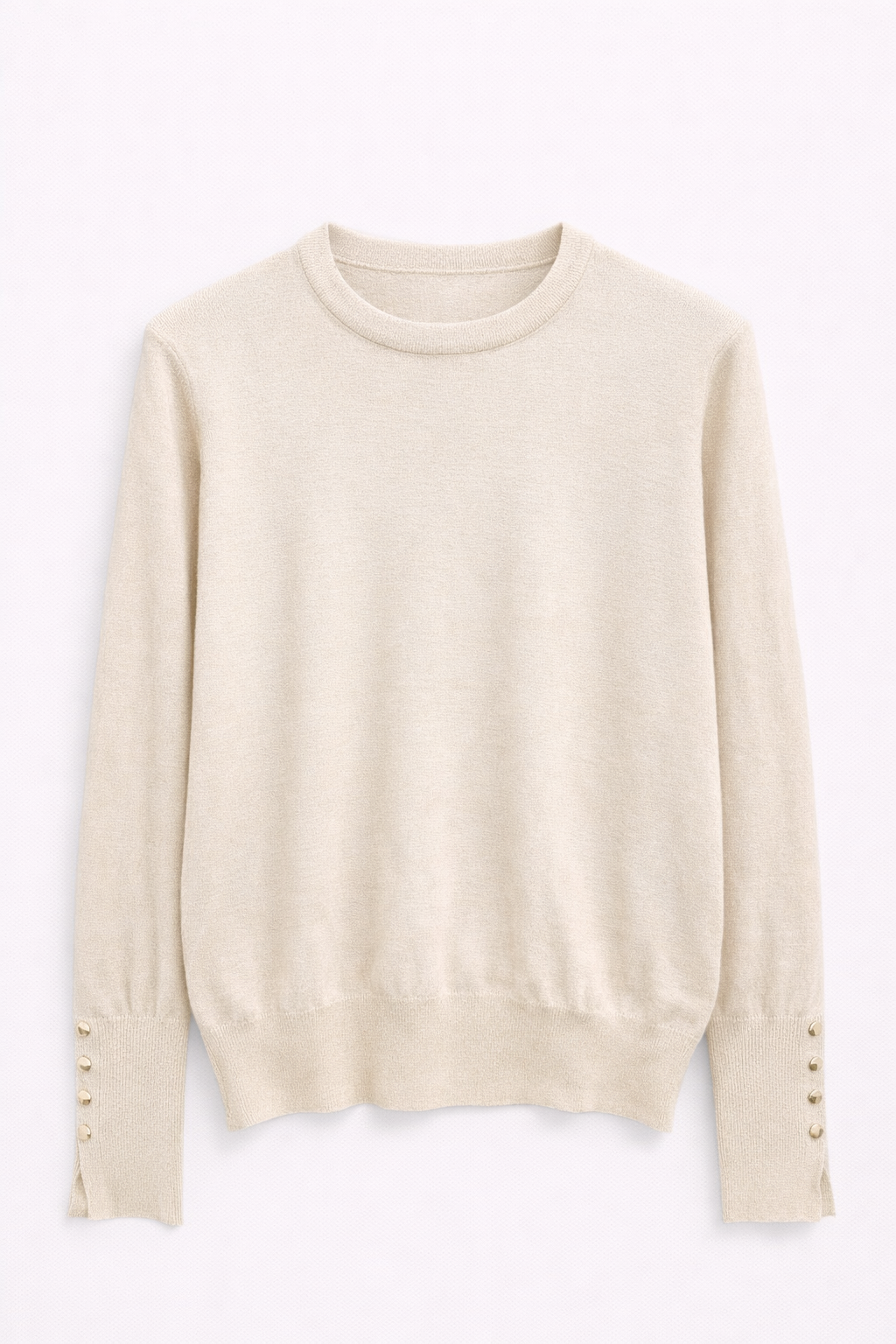 Pull fin col rond beige