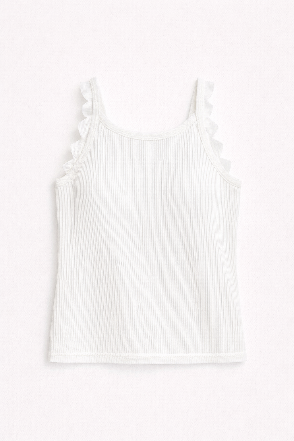 Débardeur blanc côtelé à volants